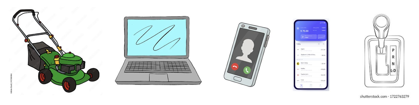 Lawnmowers: To keep the mower moving, you must constantly hold a secondary handlebar lever. If you let go, the mower stops.
