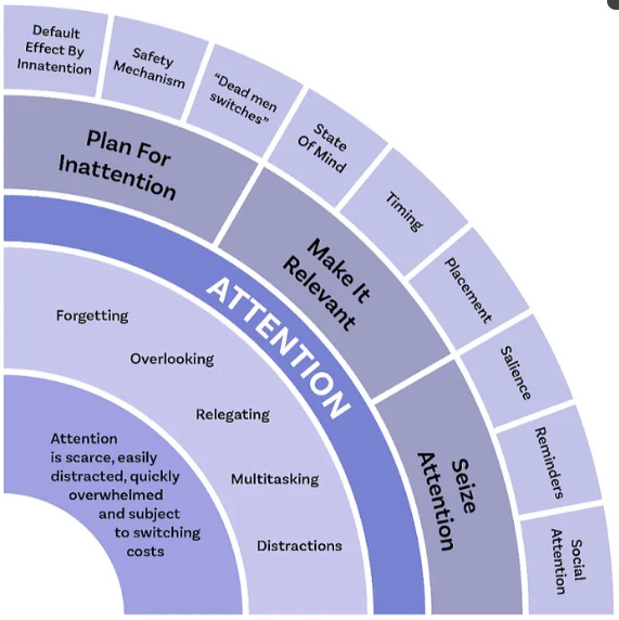 I always start by asking, where is human attention directed, or where do I want to direct it? I try to identify the most important thing I want to communicate while creating some interventions or solutions and then find a way to highlight it—to grab attention.