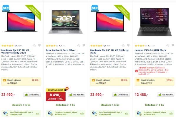 Alza, one of the largest e-commerce companies in Central and Eastern Europe, for example, does this by highlighting the product price with clearly distinguishable elements that they want to draw attention to. But such price highlighting, as you can see in the image below, is a great solution. It is not too intrusive, yet sufficiently visible and immediately draws attention to the most important aspect in advantageous offers—the price.